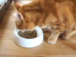 食べているのは、先生が一番に勧めていた『ペットライン/ダイエティクス 猫用スリムサポート』。