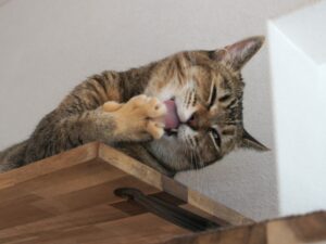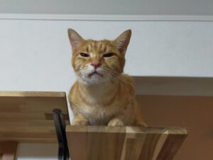 ごはん場のあたりを見に行ったり、いつものようにキッチンカウンターに登って食べ物をせがむ動きをしていたので、食欲はありそうだな。