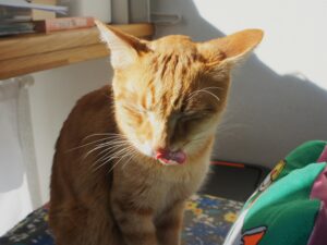 この日の午後くらいから表情もいつものなるとに戻り、寝ている時間は長いですが、起きれば甘えたり外を見たり、普段と変わらない様子で過ごしていました。