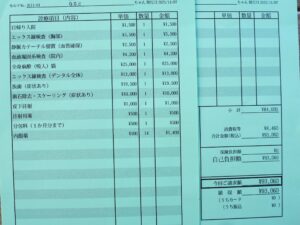 抜いたのは右上2本、右下2本、左の上下1本ずつの残っていた奥歯と、左下の小さい臼歯は元々なかったんですが根っこが残っていたという事でこれも取って、犬歯と前歯をきれいにスケーリングしてもらっています。