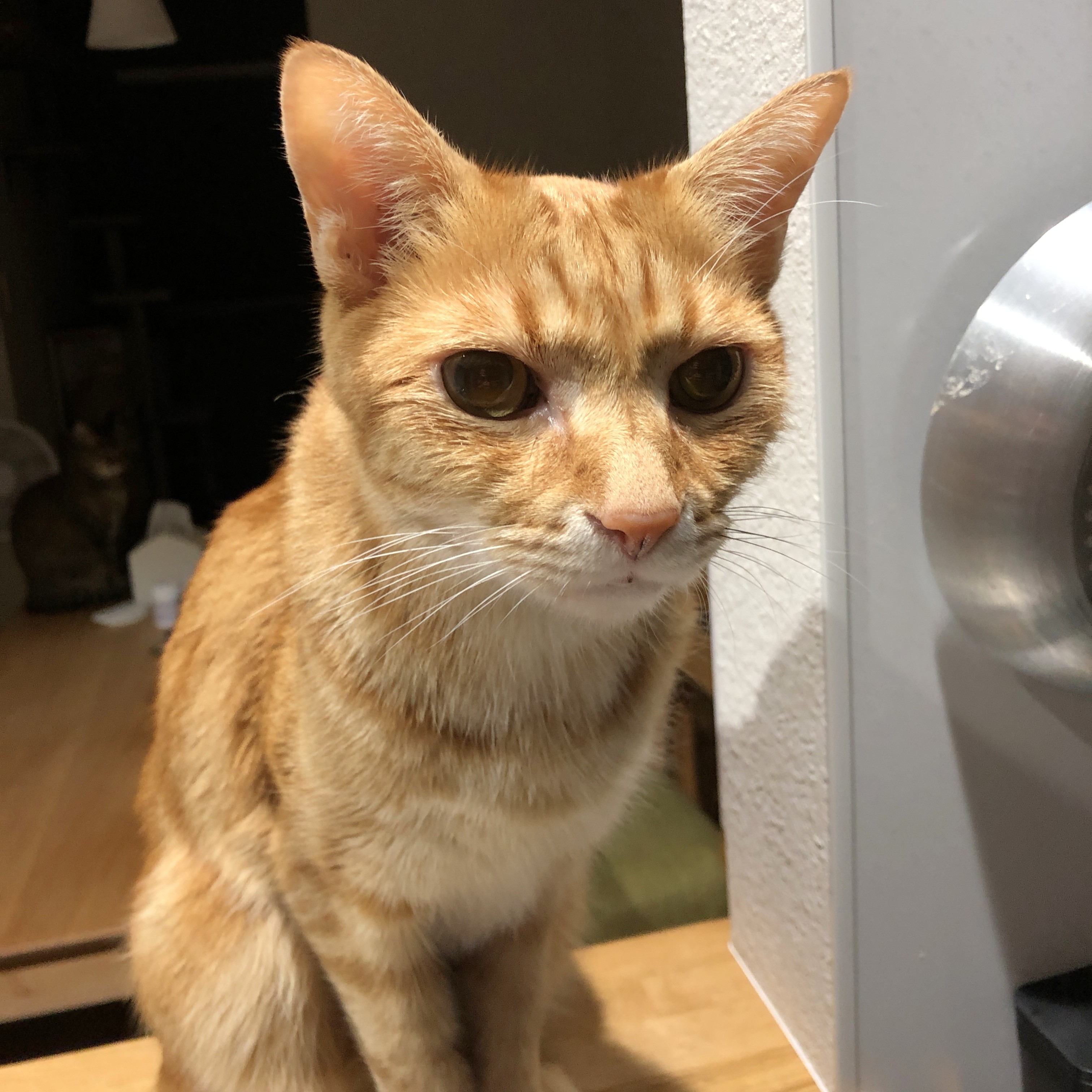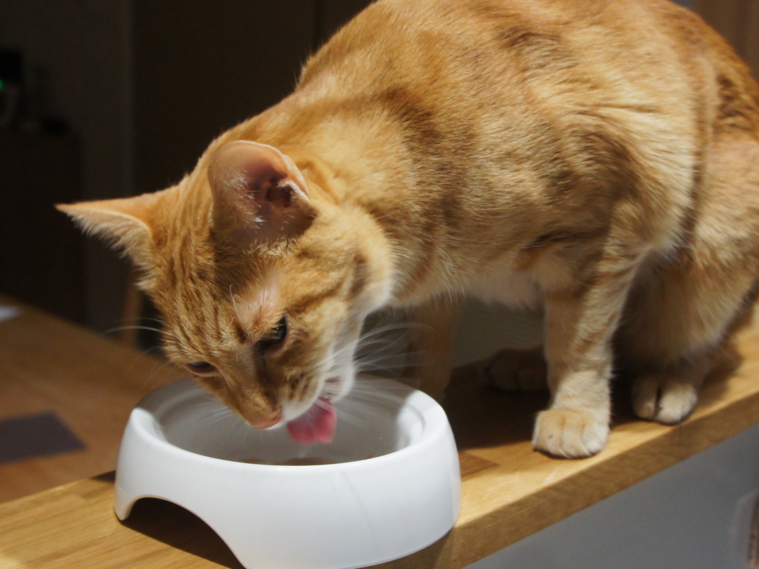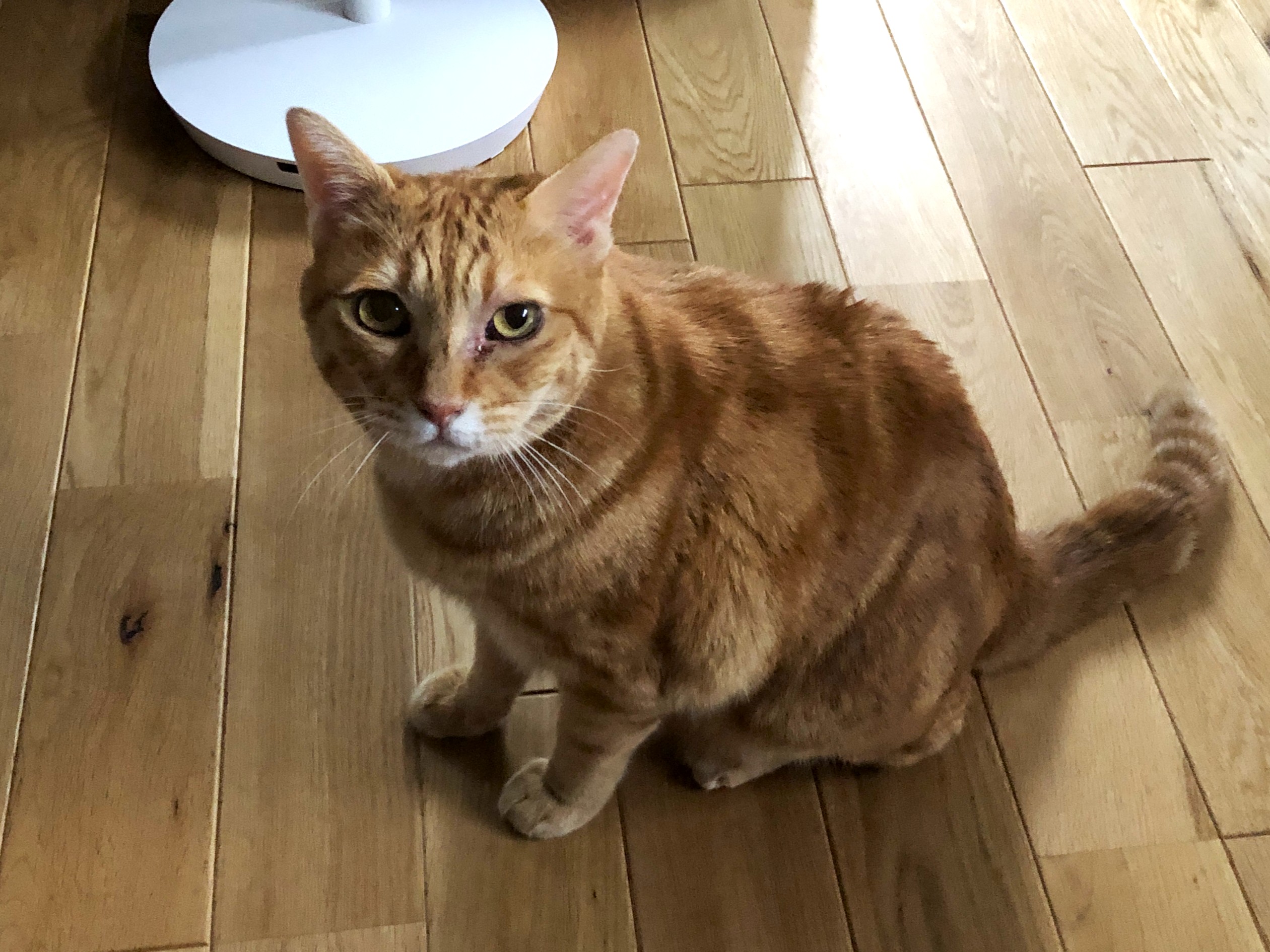 ごはん場のあたりを見に行ったり、いつものようにキッチンカウンターに登って食べ物をせがむ動きをしていたので、食欲はありそうだな。