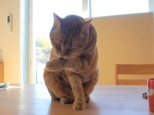 先生がちくわの歯を触って状態を確認すると、大きな歯石のあたりが気になったのか、気持ち悪そうなしぐさのあと口の淵を激しく掻くちくわ。