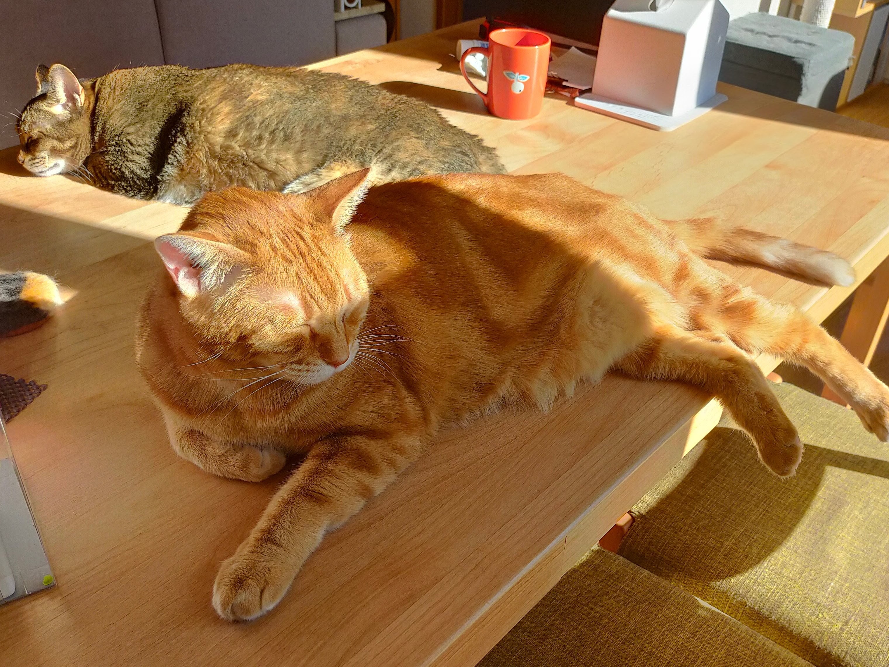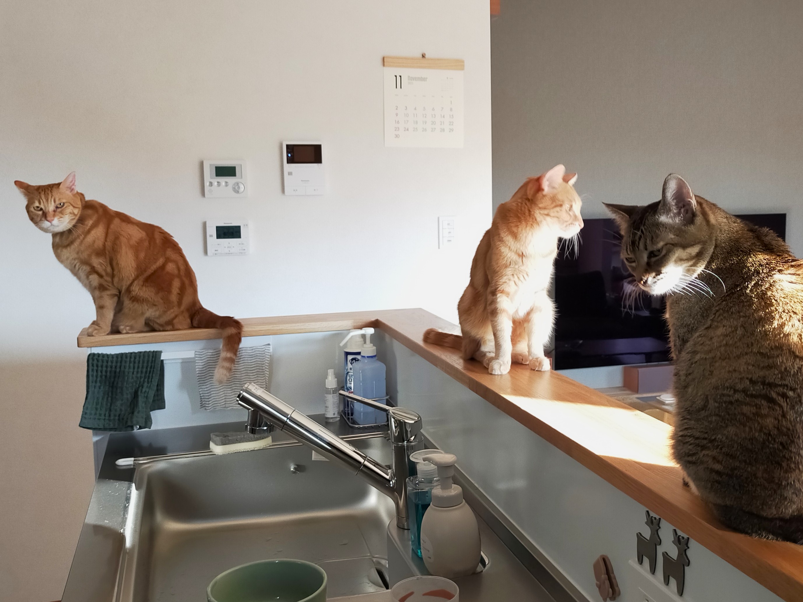 この日も黒缶とモンプチ、おやつにちゅーるを食べさせ、タイミングが合えばアビーとなるとにはカリカリを出す、という体制で過ごしました。