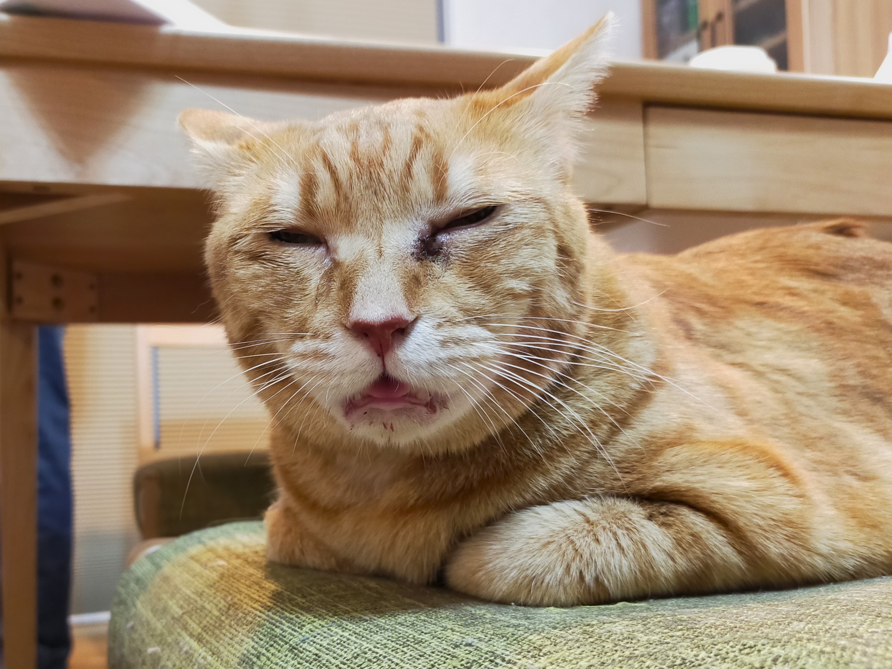 瞳孔が開いていて少しふらつくのはなるとと一緒だけど、ちくわは瞬膜が出ていて口は半開き、なんだかとっても具合が悪そうな顔をしてじっとしている…。