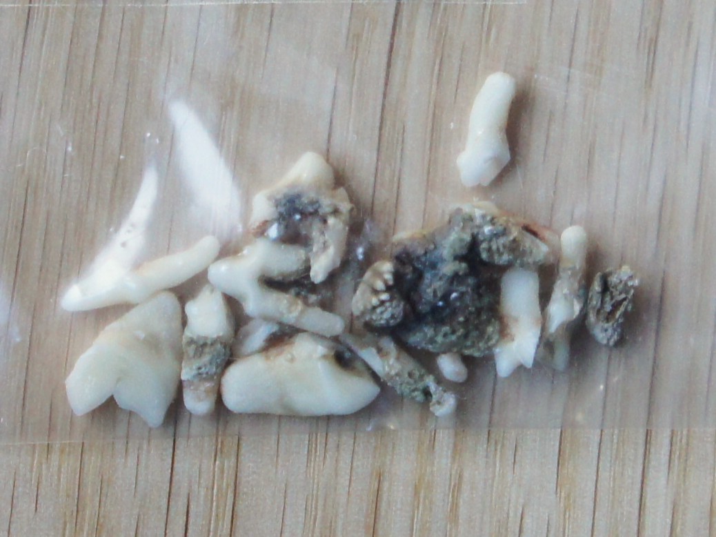 なるとはほぼ全部の歯を割って抜いていましたが、ちくわは根っこがそのままの歯が何本かあり、歯根が露出して簡単に抜けるものが多かったんだという事がレントゲン写真でもよく分かりました。