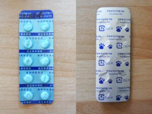 前回出してもらった『ディアバスター』(止瀉薬)と『ビオイムバスター』(整腸剤)に加えて、抗生剤の『アモキクリア』という薬が処方されました。