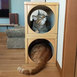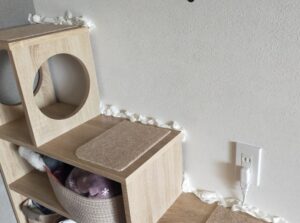 でもこの日は明らかに意思を持ってしていたので、今後も降りて来ないとなるとエライことだぞ…と、せめてラック裏にオシッコが入り込まないようにティッシュを詰めまくったんですが、このあと粗相をすることはありませんでした。ホッ💨