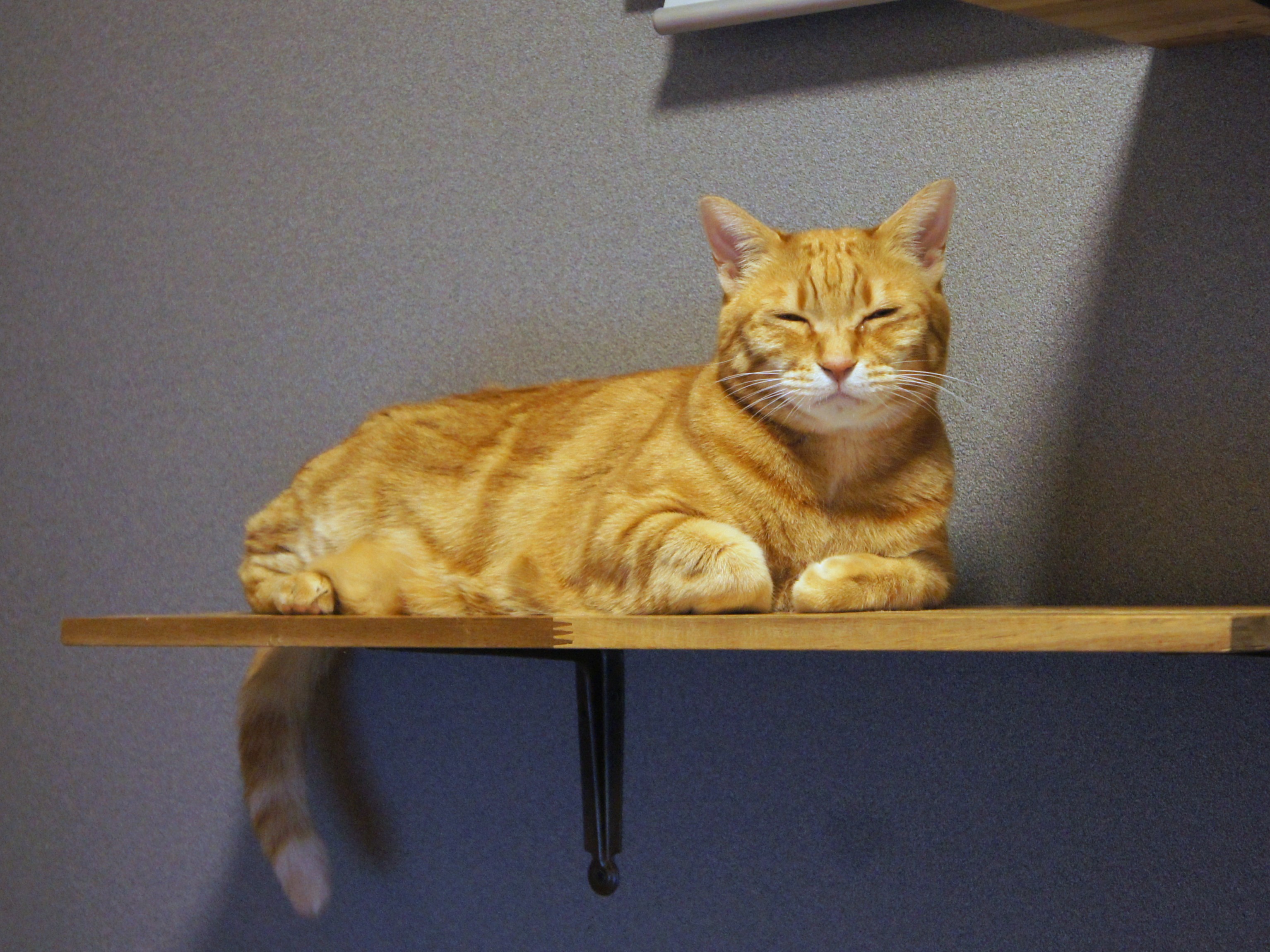 しばらくすると、疲れたのかキャットウォークの上で眠り始めました。