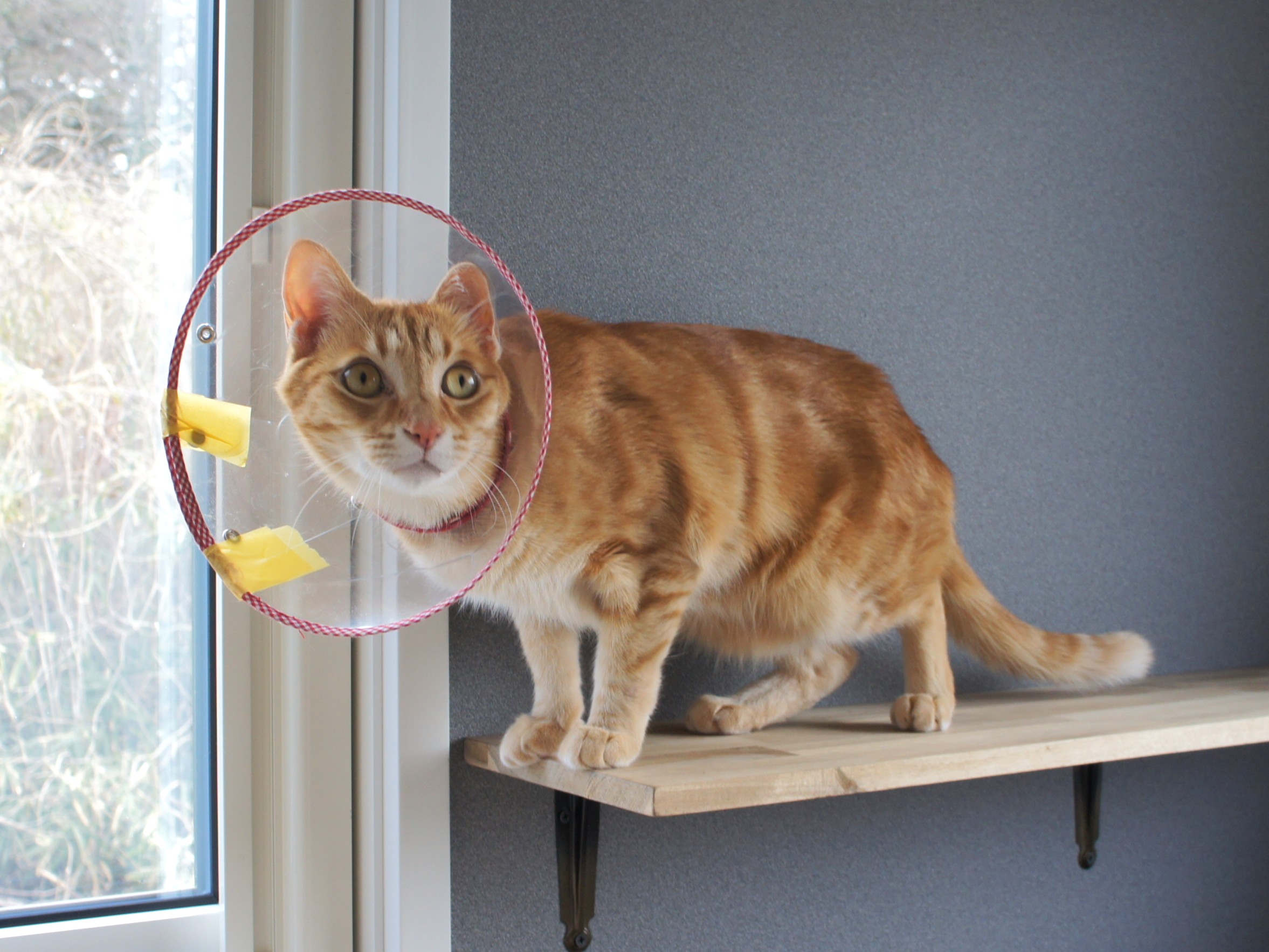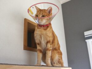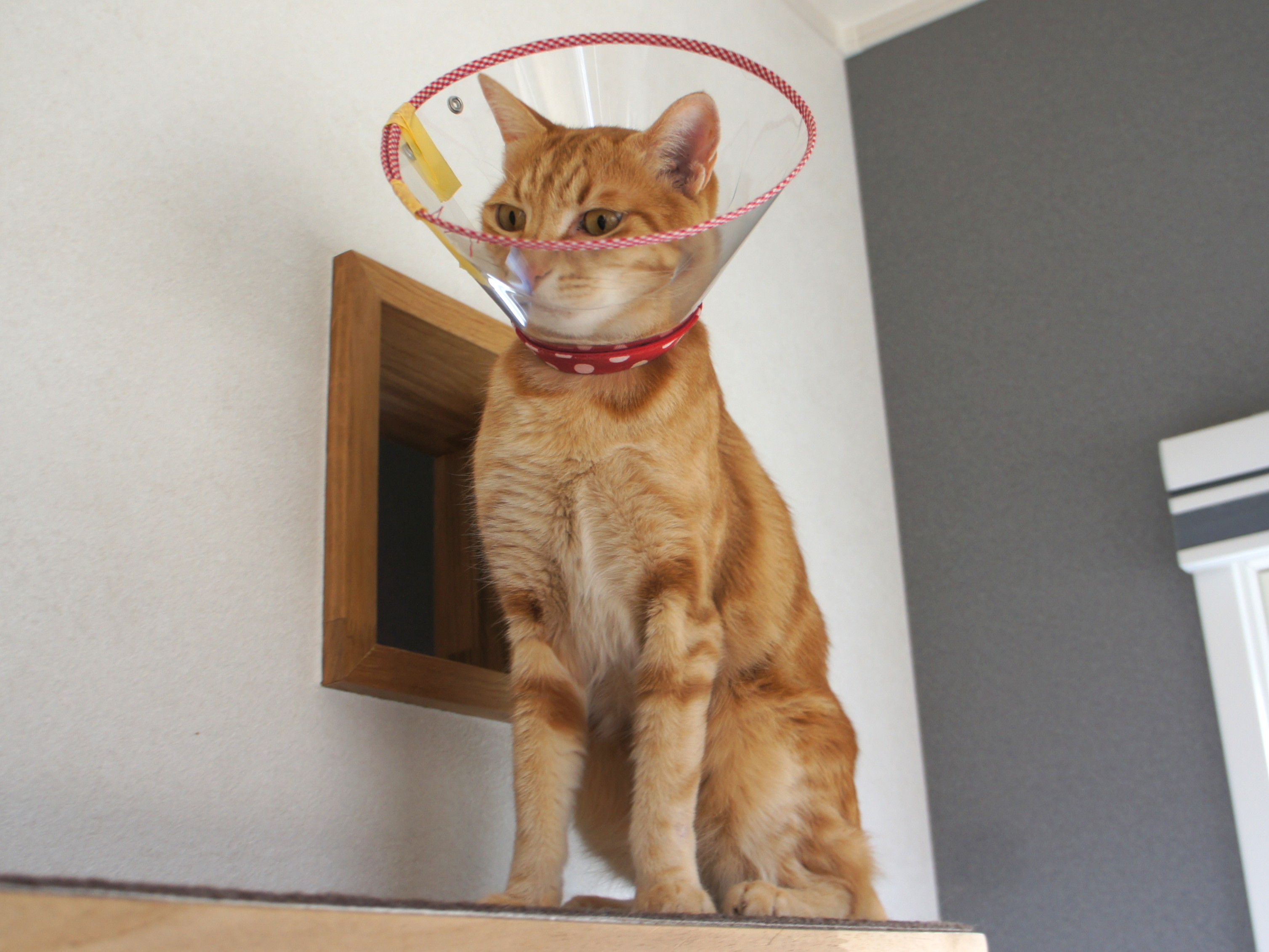 カラーが少し硬いものに変わったので物にぶつかったりはするけど、案外すぐに慣れたようでした。