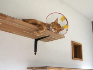 薬はおやつに混ぜれば食べてくれるけど、とにかく降りて来ないのでごはんも水も上に持って行き、食べやすいように支えてやらないといけない状態。。