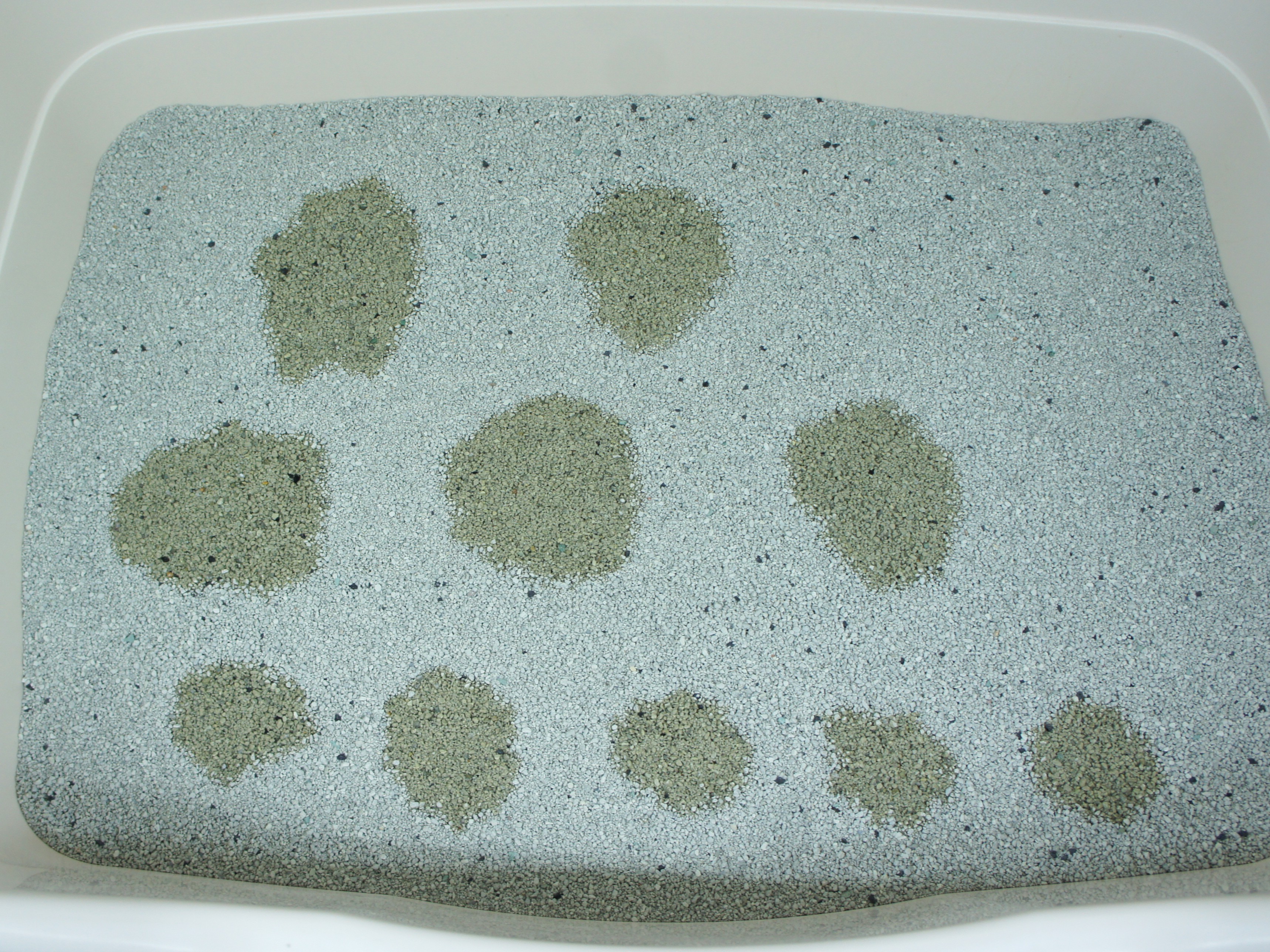 1回の掃除で7、8個、1日14~16個のオシッコがあるので、3匹が同じようにオシッコをしているとしても5回ほどはオシッコしていることになります。