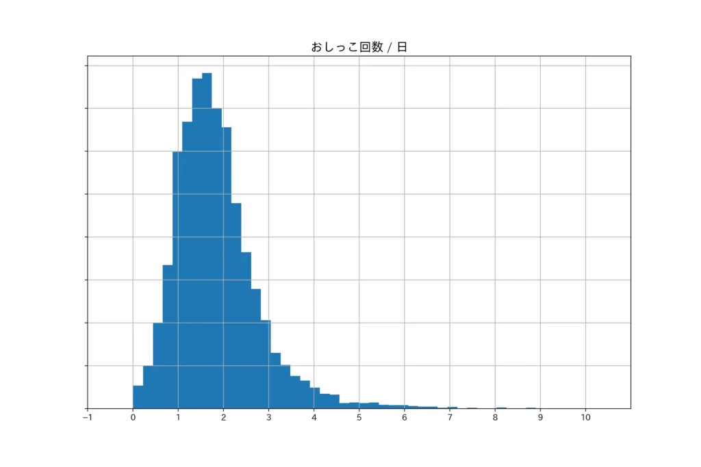横軸が1日のオシッコの回数で、その回数オシッコをした子が何頭いたかという数が縦軸になっています。