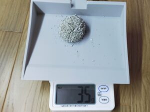 つみれがいた頃、一回の掃除でオシッコの塊が10個もある!多すぎんか!?と思ったことが何度もあったので、つみれも4、5回してたんじゃないかなぁ。